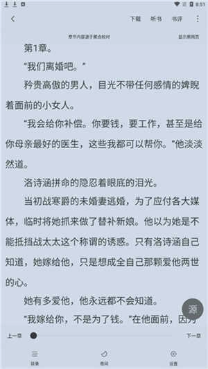 在详情页面点击“设置”按钮,即可进入阅读界面的配置选项页面。