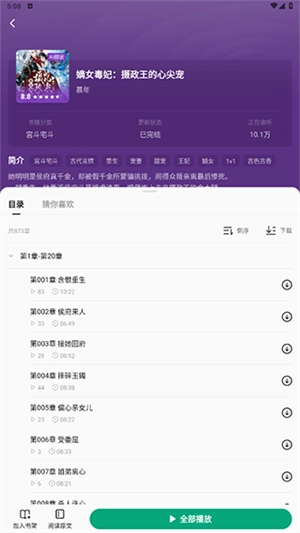 最便捷的当属听书功能,不仅能任选章节开启听书模式,还能同时去处理其他事务。