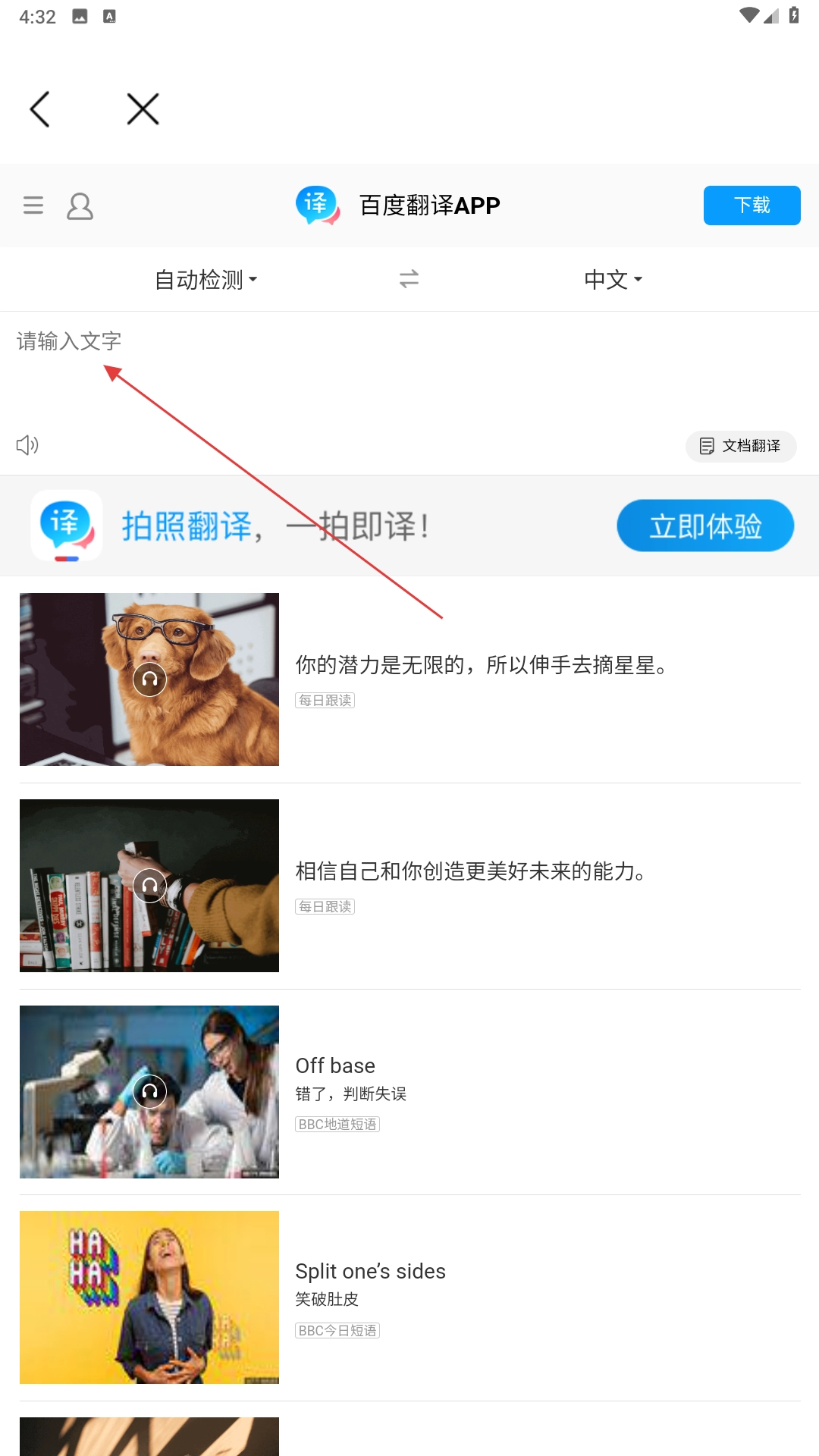 在翻译页面的【请输入文字】输入框中填写内容,然后执行翻译操作。
