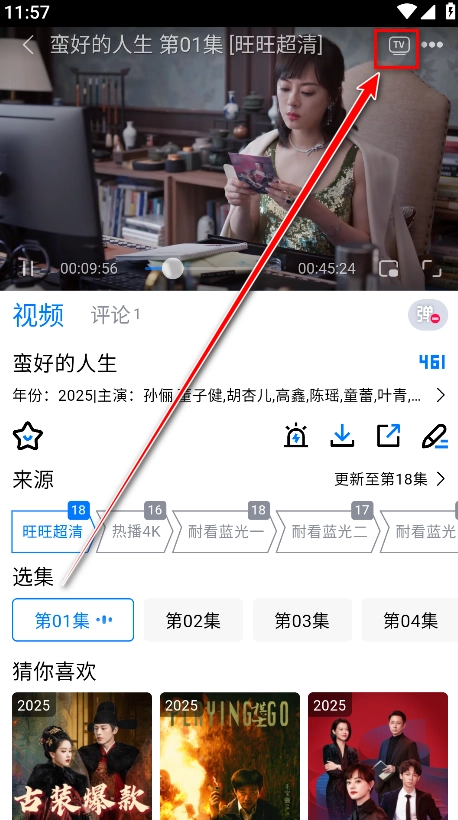 3.进入播放界面,点击右上方;