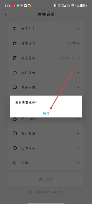 在弹出的是否清空缓存?提示框中,点击确定即可。
