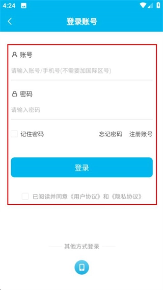 在登录账号的页面,先填写相关信息,接着勾选协议,最后点击登录按钮,即可完成登录操作。