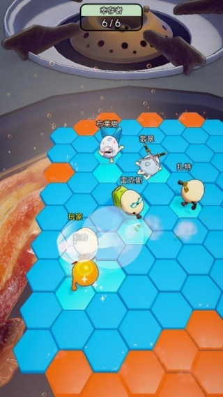 控制蛋仔完成移动、跳跃和蓄力冲刺的动作,借助精准的碰撞把其他蛋仔撞出煎锅台面,以此累积淘汰数量。