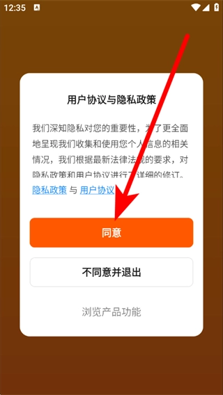 在用户协议与隐私政策的弹窗里,点击同意按钮,即可进入页面。