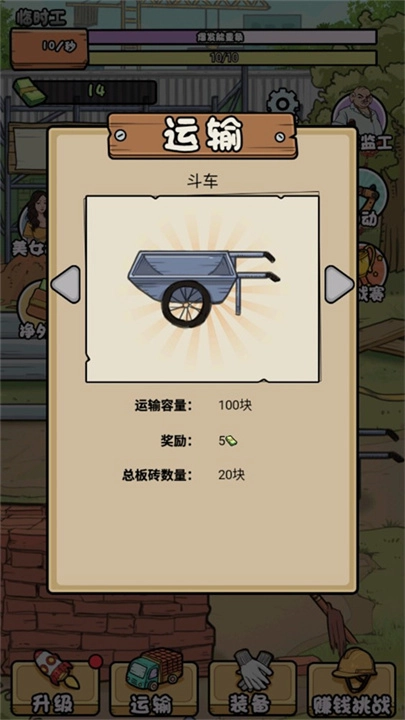 游戏中设有可提升的多项属性,玩家能够通过强化力量、体力等属性来提高搬砖的速度。