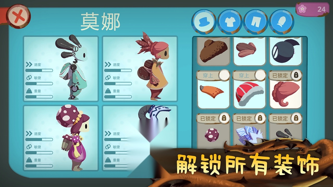 你可以挑选一个自己喜欢的角色来参与闯关,之前提到的收集小花此刻就派上用场了——灰色精灵需要花费一百花币才能解锁,购买之后就能开启游戏闯关环节啦!