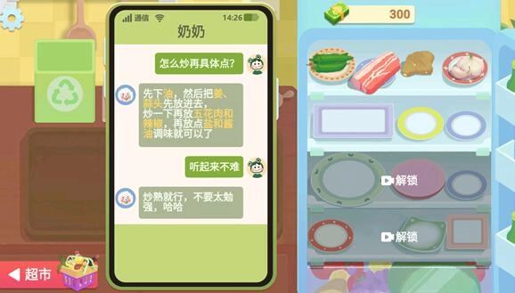《奶奶的菜谱》中文版是一款休闲角色扮演游戏,游戏里有各种各样可爱的动物角色。在这个游戏中,你将扮演狐狸奶奶的孙子——狐狸奶奶是一位顶尖的料理大师,如今已年事已高,渴望有人能传承她的厨艺。而作为她孙子的你,本身也十分热爱料理,于是这份传承厨艺的重任便顺理成章地落在了你的肩上。