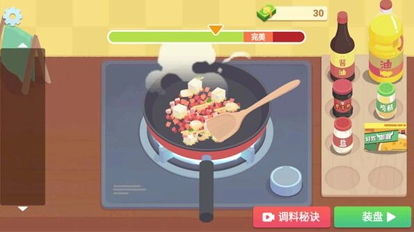 把食材放入锅中烹饪,在完美区域时进行装盘。