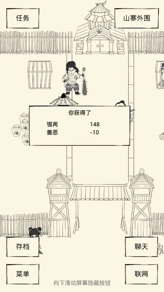 这时你可以选择扫地拿奖励,也可以选择不拿奖励继续扫地。拿到奖励后去家门口找神秘人拜师,把3个基础技能和吐纳法都点到10级,学完寸拳后往上走触发小莲任务。小莲任务有两个选择,但没区别,都要打且奖励一样,所以随便选就行。