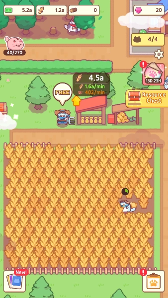 在猫镇山谷里,玩家将化身农场主,在这个遍布可爱猫咪的小农场村落中,体验田园生活的静谧与惬意。玩家能够和一群灵动俏皮的猫咪村民交流互动,借助开垦土地、栽种培育多样农作物来壮大自己的农场,打造出美丽又兴旺的家园。