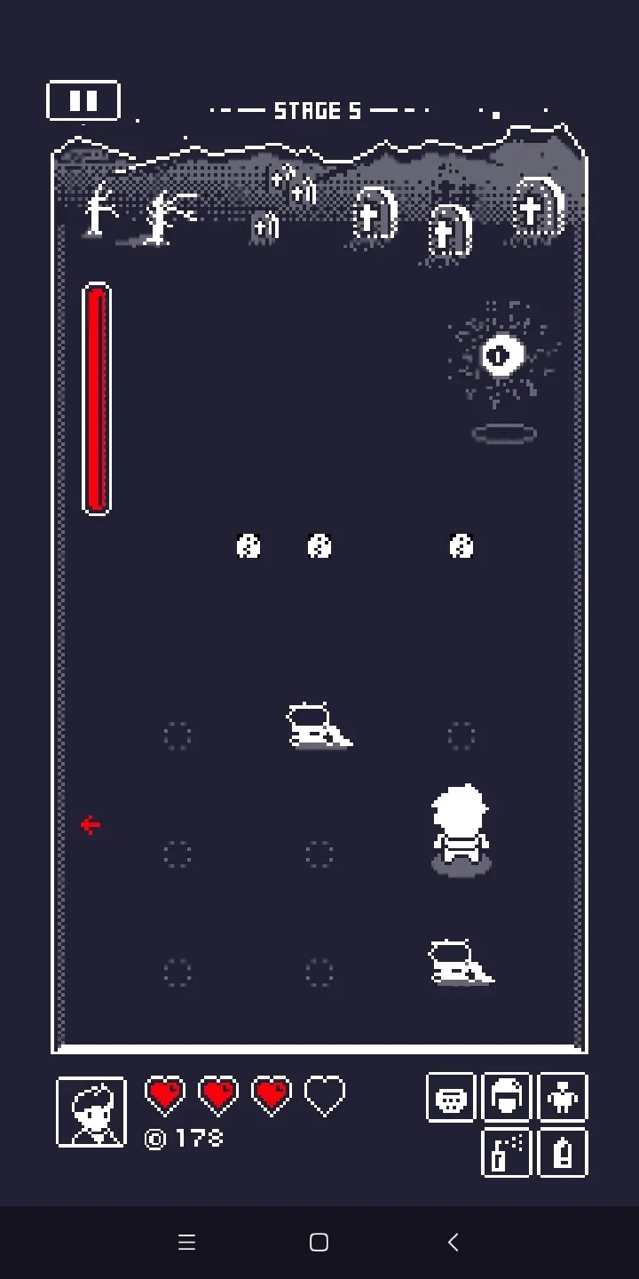 游戏画面采用简约的黑白像素风格,攻击特效十分明显,能让玩家更轻松地进行规避操作。