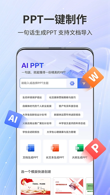 AiPPT一键生成工具拥有多样的PPT模板,覆盖商务、教育、创意等不同风格。