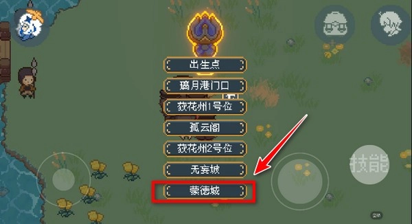 像素版原神和原版原神的操作流程一致,都是先前往璃月港的锚点,完成互动后选择前往蒙德城。