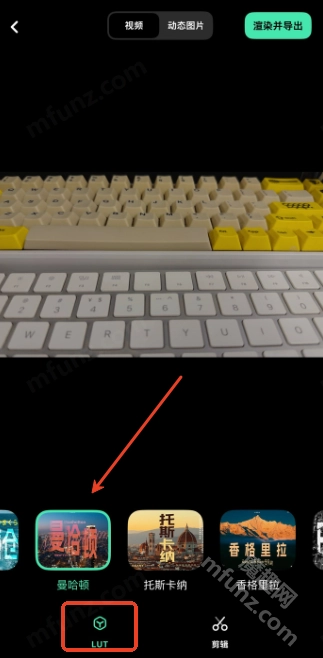 进入拍照界面后,挑选想要的LUT模版调整照片。