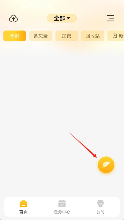 点击主界面右下角的“羽毛”图标,即可打开笔记添加记录界面。
