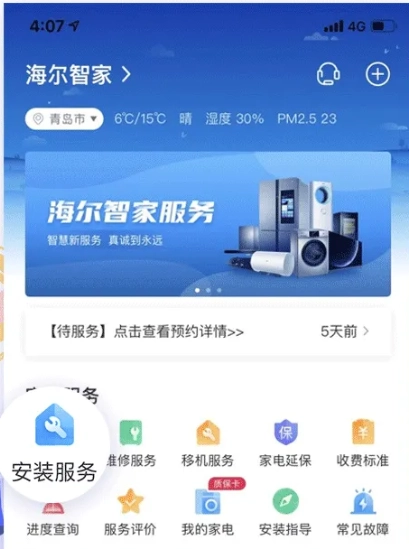 在服务首页点击【预约安装】,系统就会匹配工程师上门为您安装。