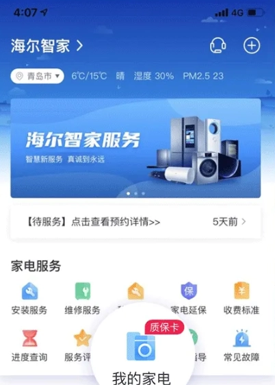 点击首页的【我的家电】,接着通过扫描家电机身的二维码,或者手动录入家电相关信息,就能在线完成电子质保卡的升级操作。