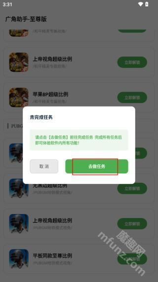 在魔趣网打开广角助手9.1,找到要修改的内容后,点击最右侧的“立即解锁”按钮。