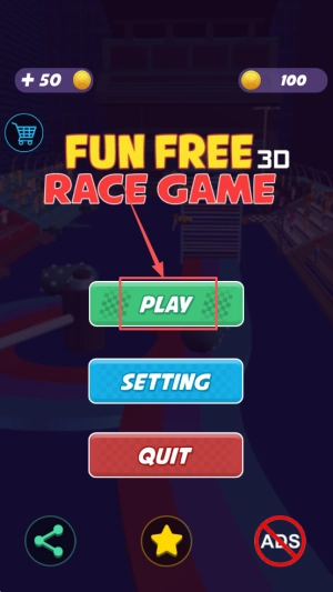 进入主菜单的操作步骤为:在显示“+50 100 FUN FREE30 RACE GAME”的界面中点击“PLAY”按钮。