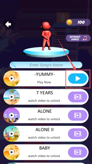 选择音乐:在WITHOUT Songs界面点击YUMMY即可直接开始。
