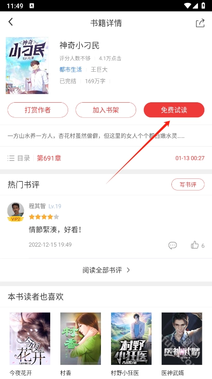 进入小说界面后,点击“免费试读”按钮就能开启这本小说的阅读之旅。