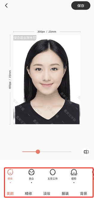 提供美肤、美白、瘦脸三种编辑模式。拍摄证件照时,用户能借助美颜调整功能,直接修饰人像的肤色与脸型等,使照片呈现出更美丽自然的效果。