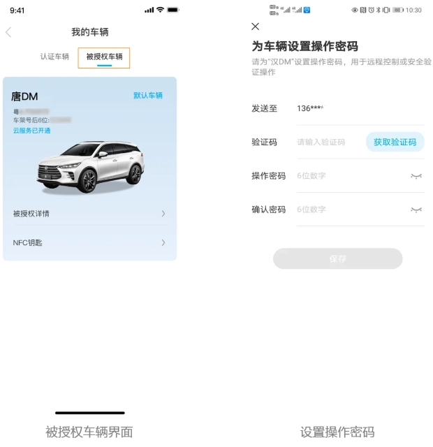若您已获得云钥匙授权,可在【爱车】界面选择任意功能来设置操作密码,完成设置后就能正常使用车辆了。