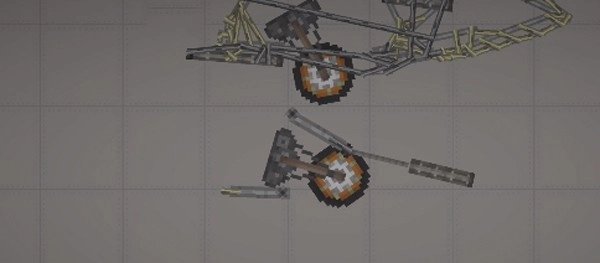 需要注意的是,这种不稳定的结构必须加装支柱——也就是机头中间的长铁块,将其设置为无重力且不碰撞的状态,再连接到机头外壳就可以了。