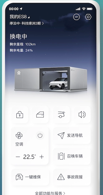 支持购车配置选择、试驾体验、车辆订购,以及NIO Power、NIO Service、BaaS电池租用服务、电池升级服务、二手车服务和悦享租车服务。