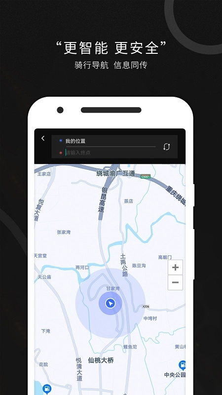 此时导航信息会自动呈现在您已连接的屏幕上,为您提供实时的骑行引导。