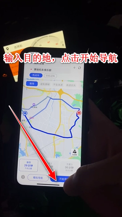 在地图上设置好你的骑行目的地,接着点击开始导航。