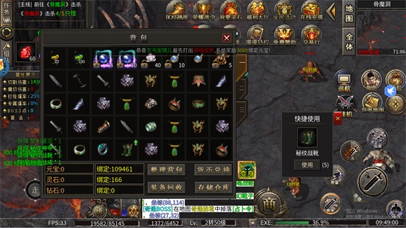 寻宝:在寻宝地图里,你可以提交材料来召唤BOSS,这个地图是公共地图。
