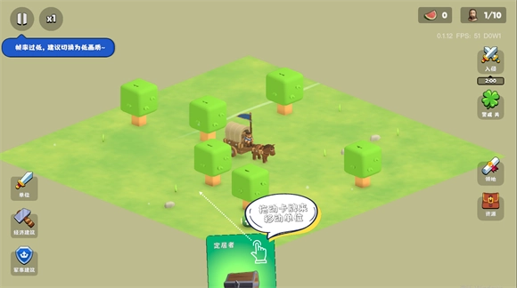 玩家能够操控英雄去收集资源,其中木头与食物都属于可收集的类型。