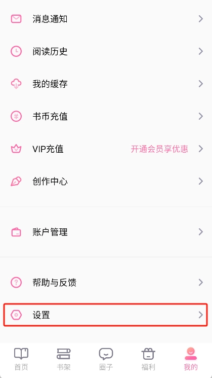 在个人中心界面向下滑动找到并点击【设置】选项。