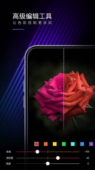 高级色彩编辑工具:具备精准的色彩调节功能,助力每张照片打造专属的色彩格调。
