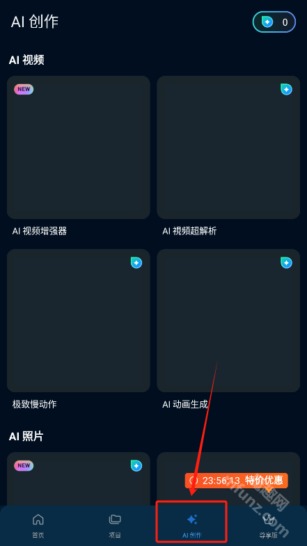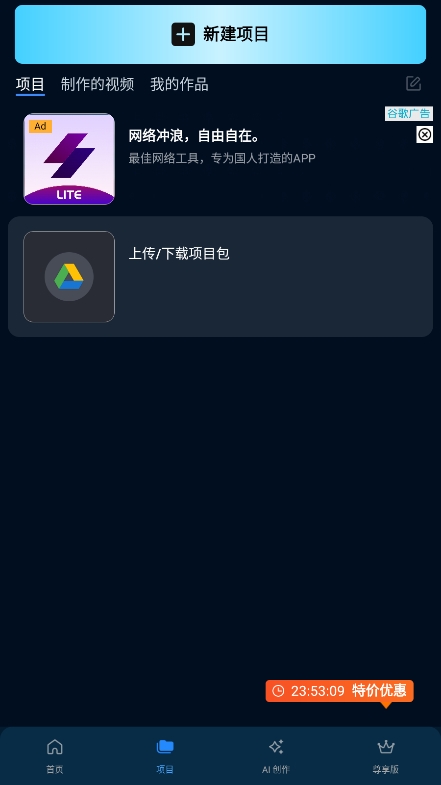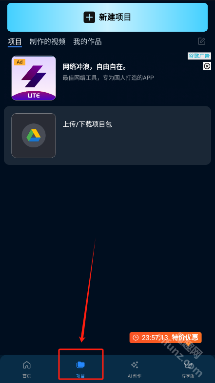 进入软件首页后,点击“新建项目”,从手机本地导入需编辑的视频。