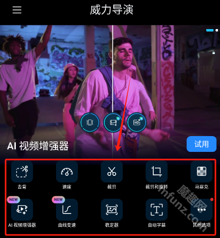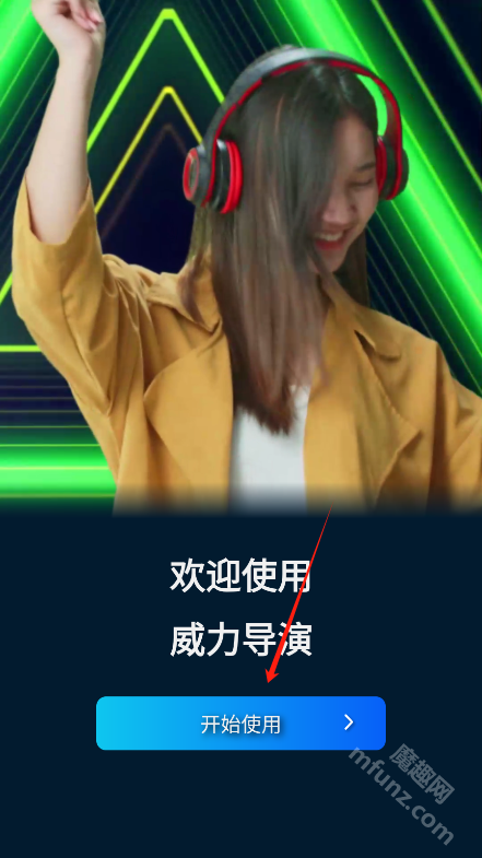 首先前往魔趣网下载并安装威力导演手机版,随后点击“开始使用”按钮进入软件界面。