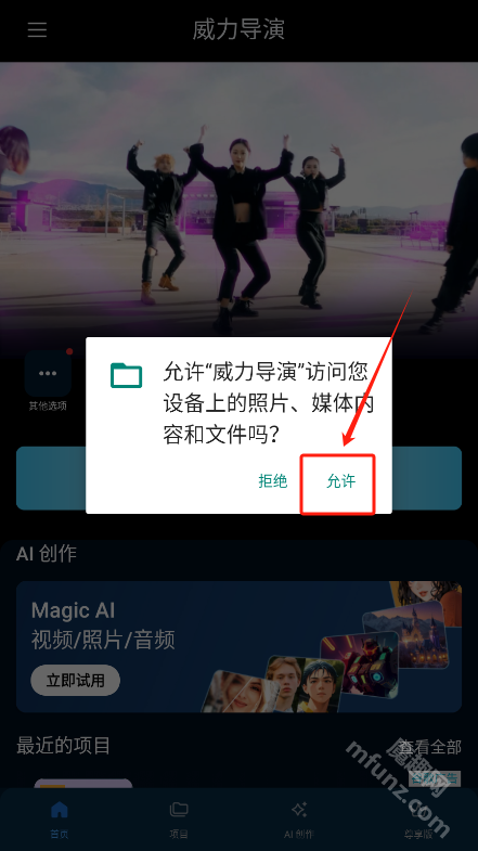 值得一提的是,在正式使用威力导演这款软件之前,需要用户先授予相应的权限。