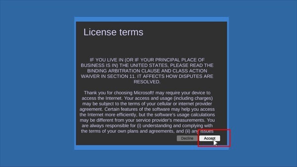 等待安装后,点击“Accept”,接受条例;