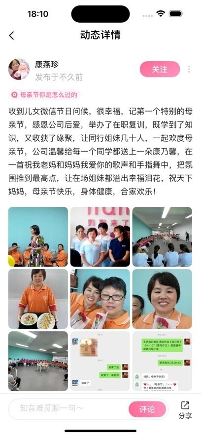 丰富的个人背景资料展示。姐妹们可以把自己的个人电子名片分享给客户,里面能包含服务口号、个性化标签、认证信息等内容。精彩相册还能生动呈现服务细节、与宝宝的温馨时刻以及表扬信等。