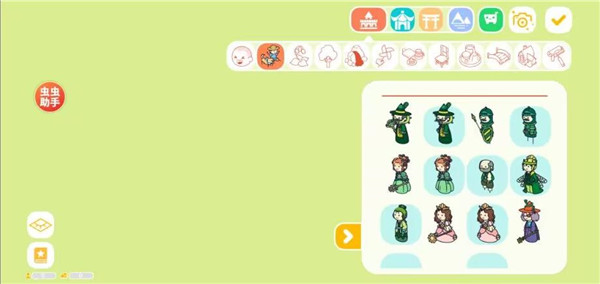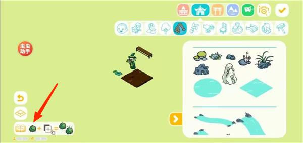 4、可添加的物品种类十分丰富,包括各类可爱的人物模型、花草树木、山石流水、桌椅等家具以及各种造型奇特的建筑等,能够进行自由组合搭配。