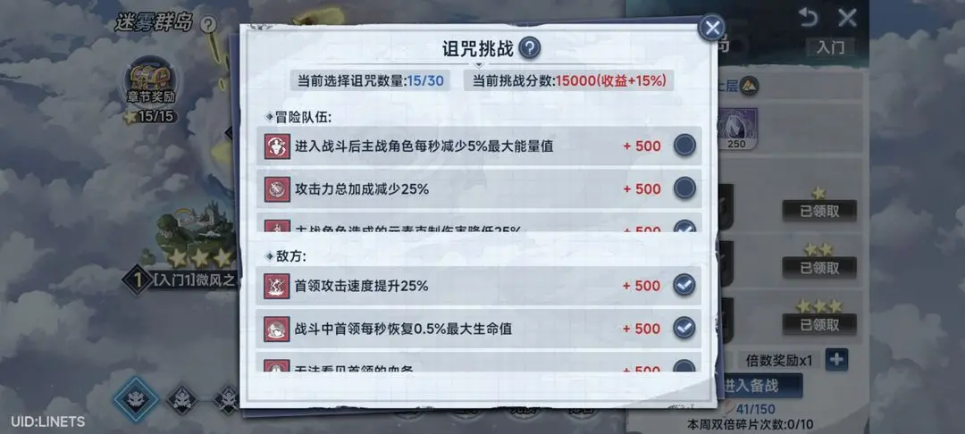 技巧4:15000分就能解锁下一关,要是单纯为了冲层的话,就别选首领连击和加攻速这两个buff,没这两个buff就不会出现进场死、没法触发凛冬的情况。