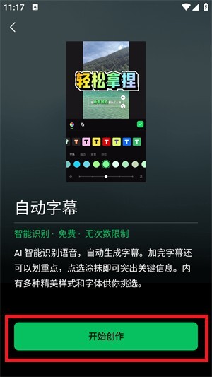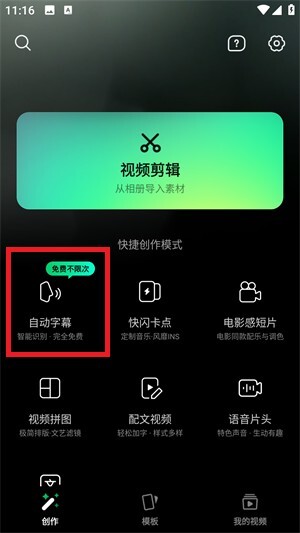 点击开始创作就可以对于视频中的声音进行识别。