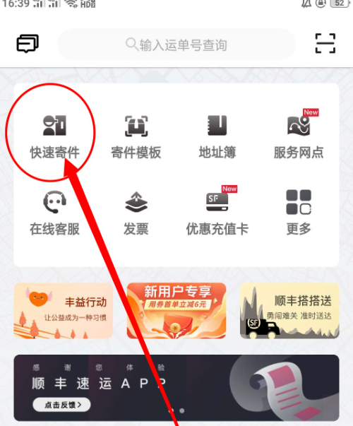 打开顺丰速运应用,在首页找到左上角的“快速寄件”按钮并点击,即可进入寄件界面。