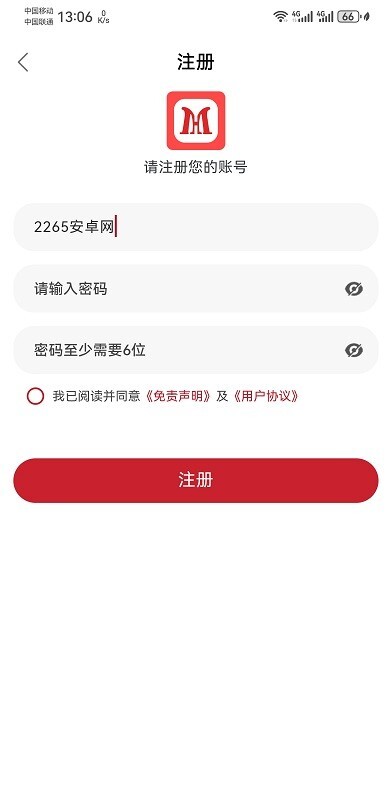 输入账户+密码,点击注册即可;