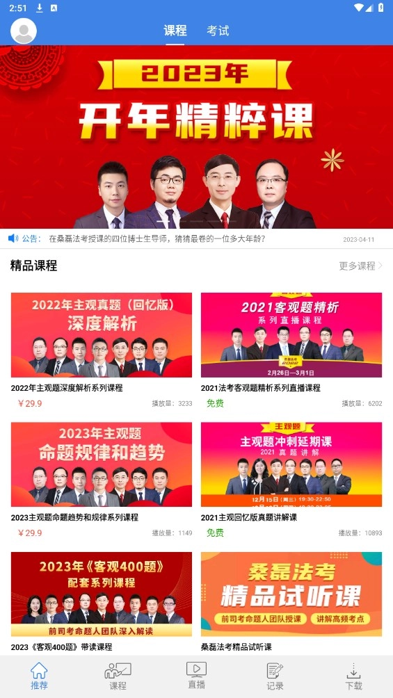 3、提供海量专业法律课程与教学视频资源,同时配备法律考试经典模拟练习题。