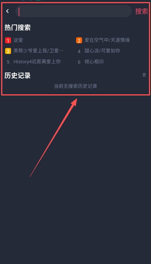4、要是有明确想观看的剧集,直接点击顶部的搜索框就行。搜索页面会展示出逆爱、黑帮少爷爱上我这类热门榜单给你作为参考,能让你下次查找时更快捷。