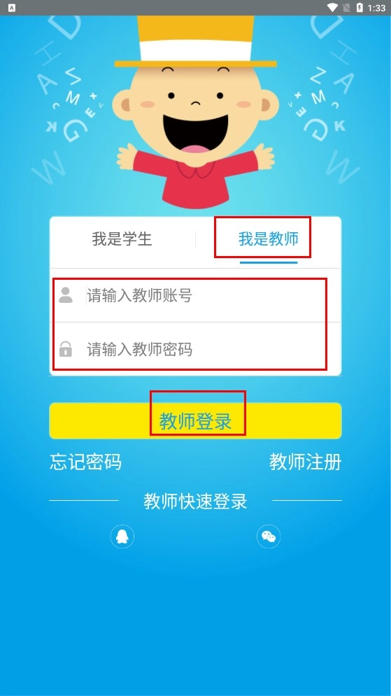 3、选择【我是教师】选项,输入教师账号与密码后,点击【教师登录】按钮,即可进入教师端界面。