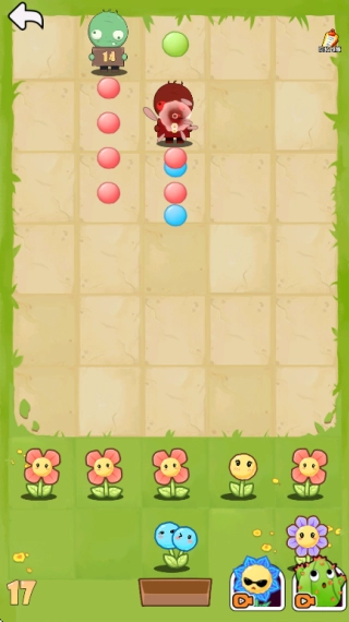 3.动态关卡机制:各关卡中僵尸的移动路径与种类配置均有差异,玩家要在限定的操作步数里完成植物的合并操作与位置布局调整,同时做好即时战况应对和长远的植物升级规划。