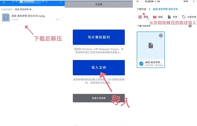 3、选择【导入文件】的方式,从手机设备中导入名为“你好的麻匪壁纸”的mpkg文件,然后点击该壁纸mpkg文件(位于压缩包内)。